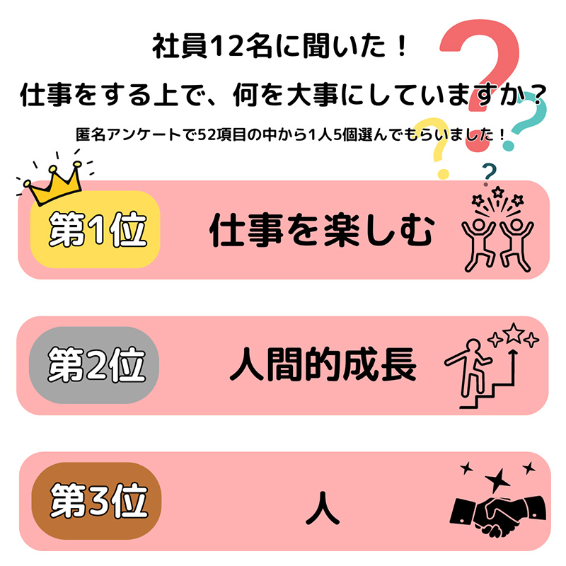 この価値観を大切にしている理由は、業界的に「自分がやりたいことを優先する」など個人プレーが非常に多い傾向があるからです。
